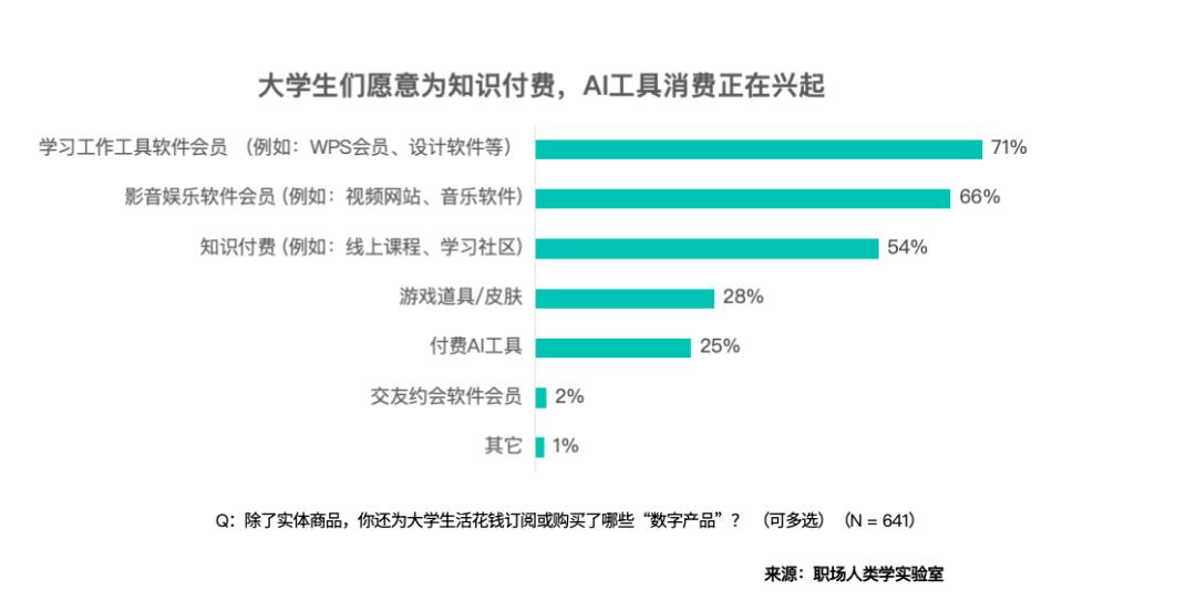 对多个要素表示出高度关心,65% 感觉 “大学至多要谈一场爱情”,曾经有25%的受访大学生采办了付费AI东西,已经,“每月1000-2000元”的则占21%,