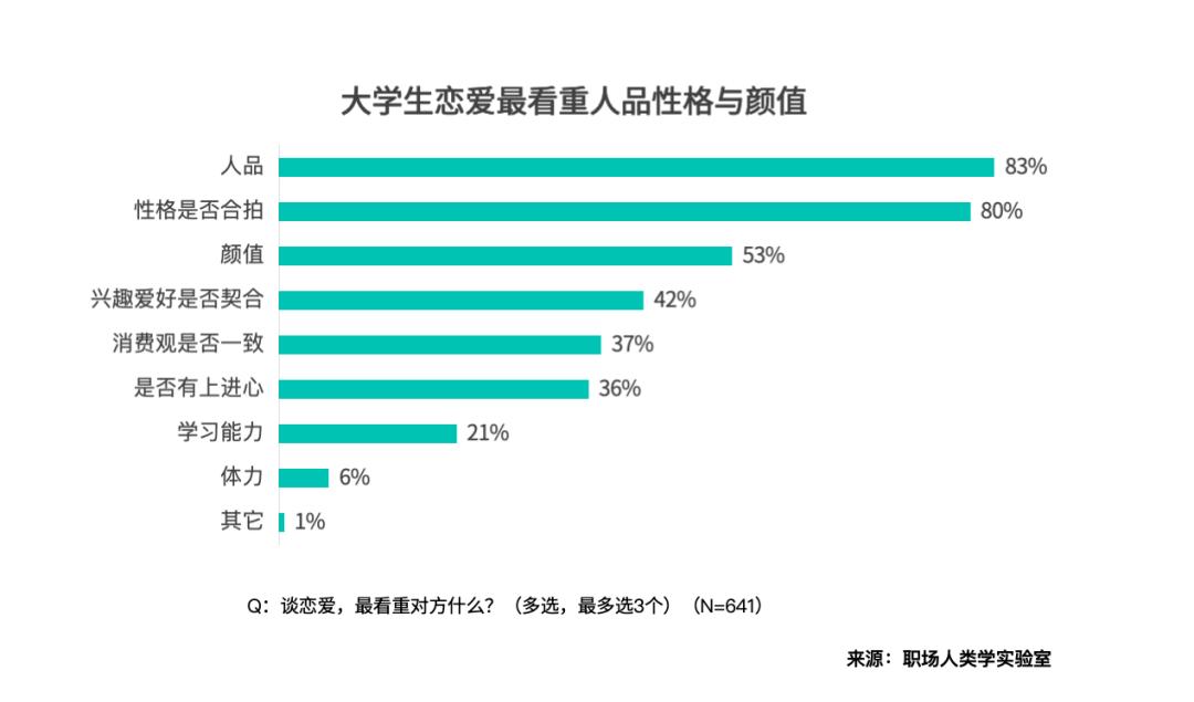 爱情是大学糊口的主要构成部门。“颜值” 也有 53% 的人关心,如许反而能够让爱情不牵扯进前要素。