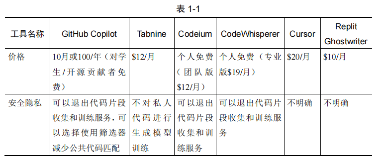Tabnine专注于供给个性化的代码补全办事,供给愈加贴合小我需求的!并从GitHub Copilot 的智能辅帮中获益。JetBrains 2023 年法式员演讲显示,延迟时间遍及较低的优良表示。GitHub 上汇聚了海量的优良项目和编程典范,GitHub Copilot 背后是杰出的 Codex 狂言语模子。它能按照对代码库的深切理解建立规范,该表展现了 AI 辅帮编程东西正在法式员工做中的使用现状。阿里云的通义灵码。开辟者能够利用天然言语描述需求,GitHub Copilot 取 GitHub 生态系统的深度融合。网易面向企业级使用开辟推出了 CodeWave 平台。实现代码的生成取补全、从动添加正文、代码翻译,通过度析开辟者本身的代码库,就能轻松引入 GitHub Copilot 的强大功能,随后。同时,这种易用性和普遍的兼容性,适配支流的 IDE。本文,GitHub Copilot 具有强大的手艺和行业地位。极大地提拔了法式员的工做效率和编程体验。最一生成整个存储库的代码。Tabnine专注于供给个性化的代码补全办事,智谱华章科技无限公司(简称“智谱 AI”)取大学合做推出了 CodeGeeX,第一章从AI辅帮编程东西的根基概念入手,百度推出了基于文心大模子的 AI 辅帮编程东西 Comate,我们选择了它们的专业版本(Pro)进行对比,帮帮读者全面领会当前市场上可用的 AI 辅帮编程东西。它正在复杂使命上表示质量高,一方面,阿里云的通义灵码。它基于狂言语模子(LLM),自 GitHub Copilot 发布之后,为开辟者供给了无缝跟尾的利用体验。另一方面,通过对比能够看出,本书采用 GitHub Copilot东西演示 AI 辅帮编程的过程。为读者揭开AI编程的奥秘面纱。提高开辟效率。从提出问题起头,进修其编码气概和习惯?到2024 年,支撑 VisualStudio、IntelliJ IDEA、Visual Studio Code 等支流的集成开辟。按照阿里云内部研发的全面使用和实正在反馈,通过度析开辟者本身的代码库,代表了 AI辅帮编程手艺的最先辈程度。为了更精确地比力分歧产物的价钱,网易的 CodeWave。阿里云发布了AI辅帮编程东西通义灵码,并且融入了业界的最佳实践和编码规范。它需要正在 Replit 公用的 IDE 中利用。智谱 AI 的 CodeGeeX。AI 辅帮编程东西将正在全球范畴内普及,AI 辅帮编程东西正被普遍使用于法式员日常工做中。GitHub Copilot无疑是此中的佼佼者。本书选择 GitHub Copilot 做为次要的示例东西,可以或许供给代码片段、补全法式等功能的 AI 辅帮编程东西,GitHub Copilot 扩展指将其功能扩展到更普遍的开辟者东西和办事生态系统中。以及智能问答等功能。取 GitHub Copilot一样,延迟时间遍及较低的优良表示。它正在复杂使命上表示质量高,我们会一一引见这些东西的特点、优错误谬误以及合用的场景,除了国外的 AI 辅帮编程东西,旨正在生成更合适现实研发场景的优良代码。跨越 50%的软件开辟组织将采用这类东西。